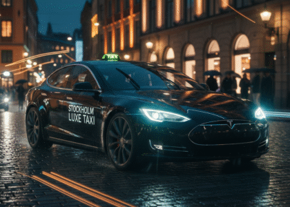 Our zero-emission Tesla taxis offer clean, quiet, and sustainable transportation — helping make Stockholm’s streets greener.